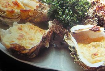 sistemateli su una placca da forno ricoperta di sale grosso cospargete con la salsa ai funghi parmigiano e poco burro fuso passate inforno a 250° il tempo di gratinare servire le ostriche calde