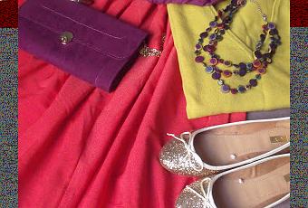 Un look liberamente ispirato ai colori che per me rappresentano l'autunno: una gonna arancio, un pull mostarda e accessori nei toni del viola. Una collana iridescente che riprende i colori dei singoli pezzi, un bracciale design e una spruzzata di glitter con le ballerine luccicanti. Il tutto in versione low cost. Che ne pensate? Aspetto i vostri preziosi commenti!