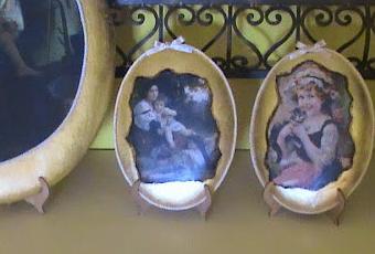 Ciao a tutte care amiche mie,oggi inizio a mostrarvi quelli che erano i miei lavori per il mercatino a cui non ho più partecipato. Degli ovali in foglia oro. E' la prima volta che uso la foglia oro e che realizzo questi ovali. Mi son sempre piaciuti e spesso mi ripetevo che , prima o poi, avrei dovuto crearne per casa mia . Cosi' in previsione di questo mercatino , ho comprato le basi in ceramica e mi son messa al lavoro. Ecco il risultato.