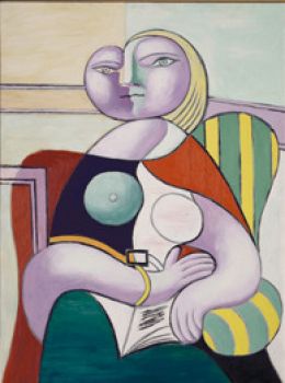 “La lecture”, quadro del 1932, rappresentante Marie-Therese Walter, amore giovanile dell’artista, ritrae Marie-Therese Walter con un libro aperto sulle ginocchia. Picasso aveva incontrato la giovanissima Marie Therese a 45 anni, quando lei ne aveva soli 17 e lui era ancora sposato con Olga Khoklova: ma presto i due ebbero anche una figlia di nome Maya.La storia tra la bionda amante-bambina francese e l’affermato maestro è una delle più ”belle” e “intriganti” storie d’amore e d’arte del XX secolo. Il pittore la notò mentre lei era uscita per fare degli acquisti alla Galleria Lafayette. Mentre usciva dal metrò, come raccontò lei stessa anni dopo, Picasso la prese per un braccio, esclamando: