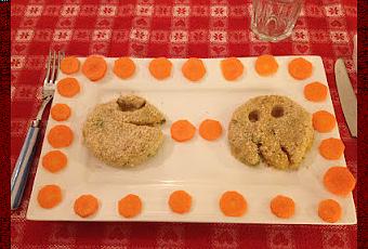 Come al solito con la forma degli hamburger ci si può sbizzarrire come si vuole, oggi noi abbiamo svegliato pac-man e gli abbiamo fatto trovare un bel fantasmino da mangiare! Chi avrà vinto?? Mhhh… temo che sia pac-man che il fantasmino siano un gradino sotto questa famiglia nella piramide alimentare!!!!