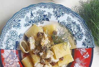 OccorrePaccheri trafilati al bronzo Spada fresco Capperi sotto saleUvettaFinochietto frescoOlio evo qbPan grattato Scorza di limone bioAglioPeperoncinosale qb