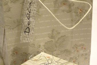 Il sacchettino e la scatolina in coordinato sono realizzati con la carta da parati.