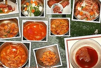 INGREDIENTI PER LA BISK DI GAMBERI: 20 carapaci di gamberi con guscio (possibilmente freschi), 1 carota, 1/2 cipolla bianca, 1 spicchio d'aglio, 2 coste di sedano, poco prezzemolo, 3 cucchiai di salsa di pomodoro, 1 bicchierino di vino bianco, 500 ml di acqua calda, olio extravergine di oliva, sale.