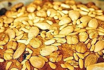 - Cospargete la superficie con la frutta secca intera e lasciate riposare il dolce per 1 ora prima di infornarlo.