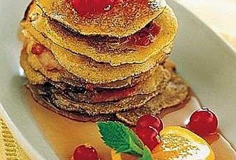 - In un pentolino riscaldate a fiamma dolce il miele insieme con due cucchiai di acqua e l’arancia lavata, tagliata a rondelle sottili e privata dei semi; versate il tutto sui pancake ancora caldi.