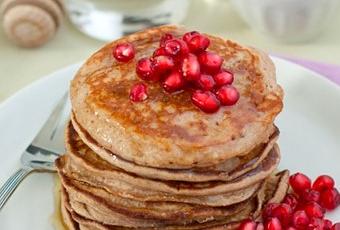 - Servi i pancakes caldi velandoli con il miele e accompagnandoli con i semi di melagrana.