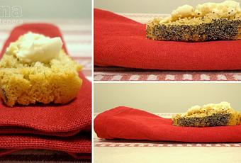 Ho messo a lievitare in uno stampo oliato per qualche ora. Appena il pane è lievitato ho scaldato il forno a 170° e ho infornato per circa 40 minuti. Come ovvio dalla foto prima di infornare ho cosparso con dei semi di papavero, ma a piacere si possono usare altri semi o cospargere con della farina setacciata. Un'ulteriore alternativa può essere bagnare con il latte per fare una crosta più croccante e colorita.