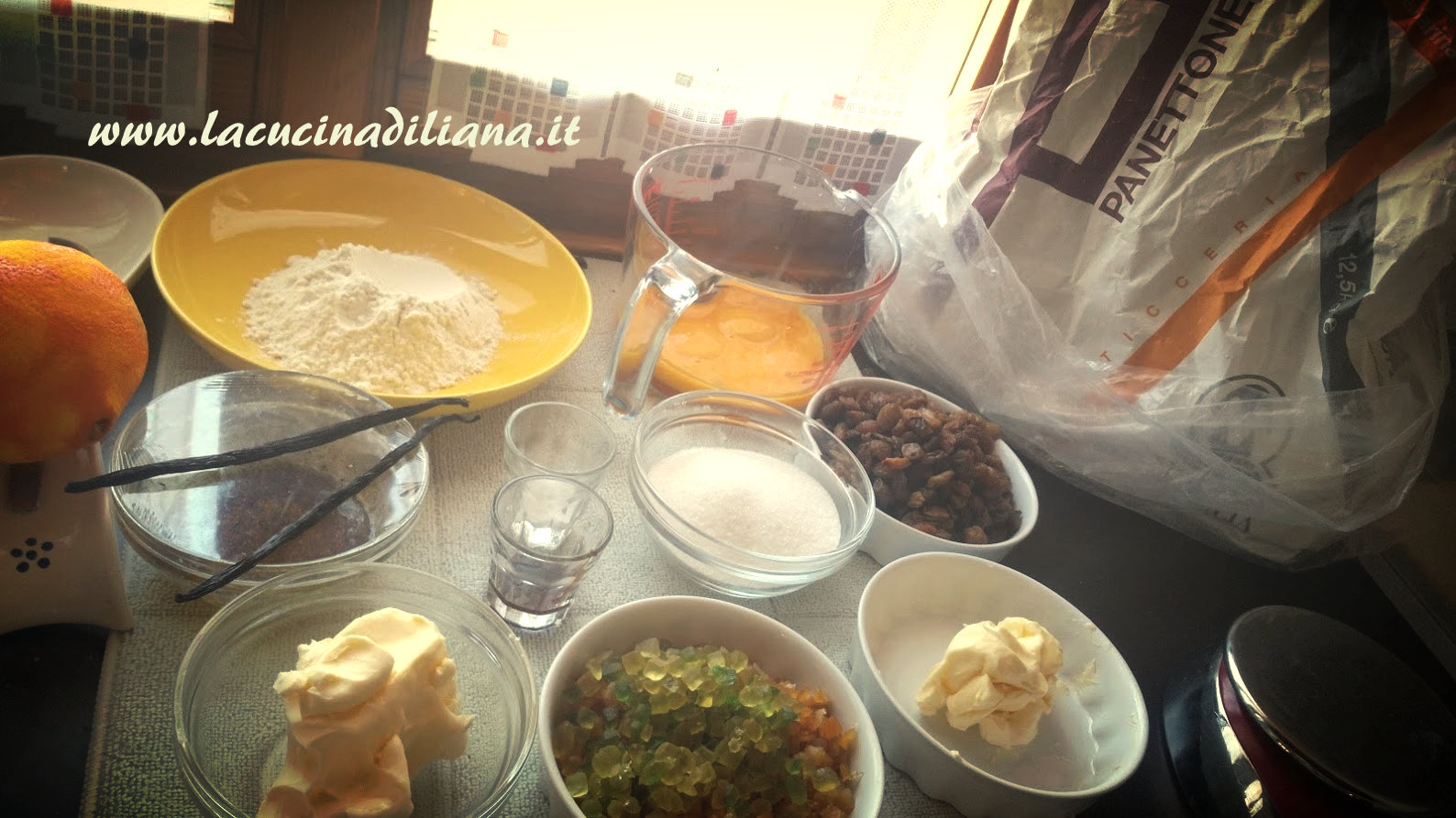 - 300 grammi di farina 320-250 W (io ho usato farina Panettone del molino Quaglia)