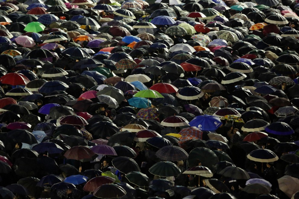 Che gioia!! Ero proprio lìieri sera... a Piazza San Pietro. Fradicia e stanca... Posso dire "Io c'ero". Arrivata al termine delle interminabili ore di ufficio, mi sono messa in paziente attesa insieme ad una folla sconosciuta ma vicina allo stesso tempo. Una gioia profonda e un'attesa che ci univa tutti. Una pioggia battente e una piazza San Pietro tappezzata di ombrelli. Io ero nascosta sotto uno di quelli che vedete in foto... ;o)