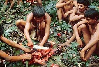 " (...) Una tattica di guerra fra gli Yanomami, è quella di invitare la gente di un altro villaggio a venire a festeggiare nel loro villaggio ed ucciderli quando hanno deposto le armi e si sono messi a mangiare. (...) (allo stesso modo) il popolo Sawi, del sud-ovest della Nuova Guinea, onora il tradimento come fosse un ideale: piuttosto che uccidere direttamente un nemico, preferiscono invitarlo più volte, nel corso dei mesi, a far loro visita e a condividere il cibo, per poi osservare il loro terrore quando, prima di ucciderli, dichiarano: « Tuwi asonai makaerin ! » (Ti abbiamo ingrassato con amicizia per il massacro) "