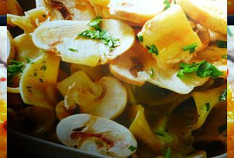 scolate la pasta conditela con la salsa al prezzemolo e completate con gli champignon a lamelle