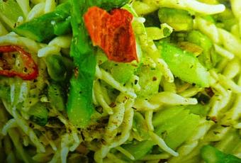 cuocete le trofie per il tempo indicato sulla confezione e servirle con la salsa e gli asparagi