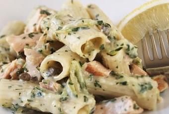 Ora tagliate il salmone a striscioline, fate soffriggere in una padella un po’ d’olio ed uno spicchio di aglio che toglierete appena sarà dorato. Aggiungete il salmone e il prezzemolo e fate sciogliere a fuoco lento. Nel frattempo mettete a bollire l’acqua e cuocete la pasta. Quando la pasta sarà al dente scolatela e versatela nella padella con il salmone e la crema di zucchine,fatela saltare in padella fino a che non sarà tutto amalgamato.