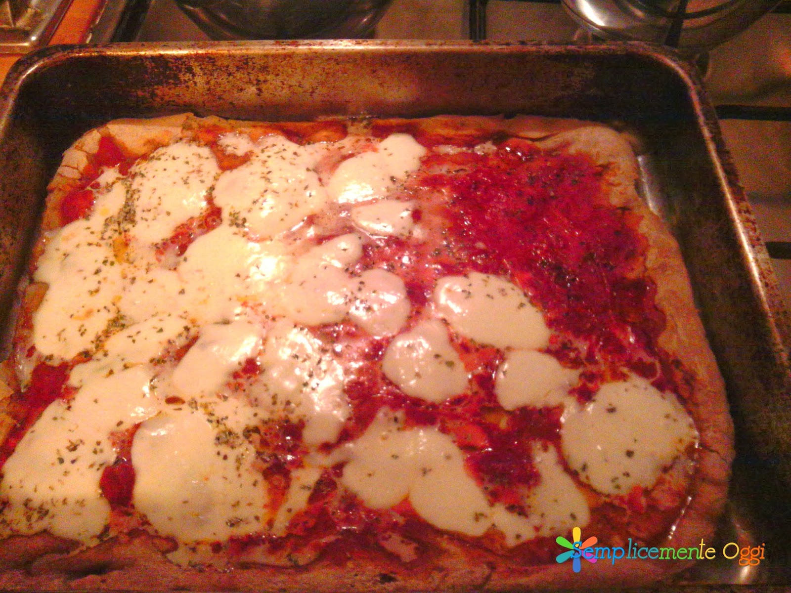 Lo stesso giorno ho preparato anche una pizza, di farina integrale, buona era buona, ma secondo me non era tanto lievitata, era rimasta un po' troppo pastosa, in settimana farò un'altro tentativo, credo che dipendesse dal fatto che ho lasciato lievitare poco intorno alle 5 ore, avevo rinfrescato al mattino la pasta madre, aspettato 4 ore e poi impastato e lasciato lievitare fino a cena.