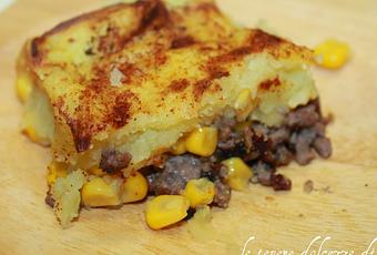 Debbo confessarvi che, sebbene abbia seguito alla lettera la ricetta tradizionale, nel momento di porzionarlo il Pâté Chinois non rimane così compatto come risultava invece dalle foto del web, ed io sinceramente me lo aspettavo, visto che nel macinato di manzo non c'era nessun ingrediente che lo legasse, mentre per lo strato di mais se si utilizzano non solo i chicchi ma anche la crema (che qui in Italia non ho mai visto ma forse potrebbe trattarsi di chicchi ridotti in purea) si può evitare che i chicchi si stacchino dallo sformato mentre lo si serve.