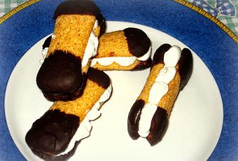 Detto fatto, ho visto questa ricetta e me ne sono innamorata perchè l'idea dei pavesini intinti nel cioccolato fuso e abbinati come pasticcini farciti con la crema mi è sembrata geniale! E indovinate un po' con che crema ho farcito i miei "pasticcini"? Con la Crema Chantilly!Il risultato è stato davvero goloso! Ancora più buoni se lasciati riposare una notte in frigo! Un'idea deliziosa da presentare a fine cena ai vostri ospiti. Sono certa che ne andranno matti!