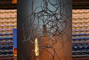 Luce e buio, fili e materiali di scarto sapientemente assemblati per dar loro