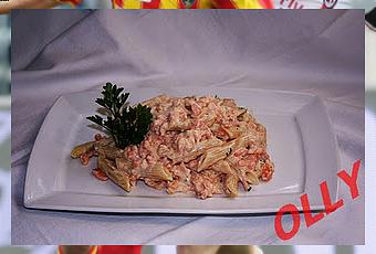 tritare sottilmente lo scalogno, mettere il burro in una padella e appena è sciolto unire lo scalogno e farlo rosolare, unire due cucchiai di vino e fare evaporare, poi aggiungere il cognac e flambare, unire il pezzetto di dado sbricciolato . Mentre i lessano i tagliolini unire la panna allo scalogno e poi anche il ketchup (serve solo per dare un po di colore) mescolare bene e unire il salmone tagliato finemente. Appena la pasta è cotta, versarla nel sugo e spolverizzare con un po di prezzemolo.