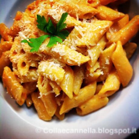 Salate l'acqua quando bolle e buttate la pasta. Conditela con la salsa di peperone e ricotta e servite!