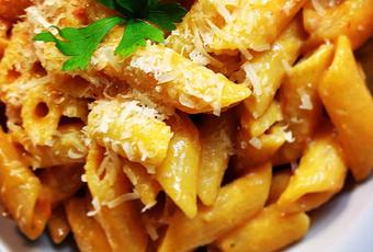 Salate l'acqua quando bolle e buttate la pasta. Conditela con la salsa di peperone e ricotta e servite!