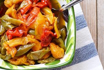 La peperonata è un classico contorno estivo, anche se la si può preparare tutto il periodo dell'anno...ma in estate i peperoni danno il loro meglio.E' una ricetta tipica dell' Italia del sud ; la peperonata esiste in molte varianti, chi aggiunge il sedano,come faceva mia suocera,chi la zucchina, ma per me la peperonata è peperone e basta...Buona mangiata calda come contorno, anche se la preferisco il giorno dopo in modo che si insaporisce per bene,magari gustata tiepida....e che dire della peperonata servita come bruschetta su una bella fetta di pane tostato? ...ho già l'acquolina...