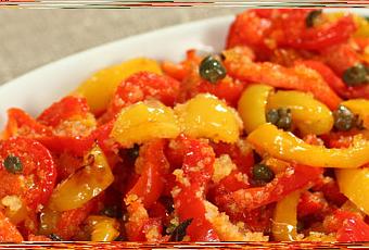 Unite gli spicchi d’aglio tritati finemente e condite con sale, olio, capperi e pan grattato. Cuocete in forno a 180° per 30 minuti o fino a che non si forma una crosta dorata in superficie.