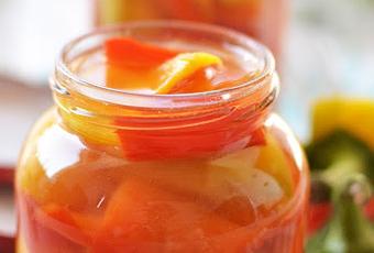 preparazionePrendete dei peperoni molto grossi e carnosi, puliteli eliminando gambo,picciolo e semi.In una pentola,abbastanza grande,portate a bollore l'aceto,l'olio,il sale e lo zucchero, unitevi i peperoni tagliati a pezzettoni.Quando si alza il bollore, con l'aiuto di un mestolo forato togliete i peperoni dal liquido, conservatelo, e fateli raffreddare su di un grande piatto.Quando saranno freddi disponeteli nei vasi e copriteli con il liquido di cottura