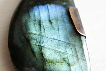 Pendente, Labradorite e rame.Per amore delle pietre, coi loro colori incredibili, le forme libere, i riflessi che catturano lo sguardo. Ti chiedi ma perchè limitarti alle perline quando queste pietre grandi e levigate possono arricchire in modo incredibile la gamma di bellezza che può offrire un gioiello? E allora ti viene in soccorso la lamina, il seghetto, la fantasia che segue il contorno della pietra.