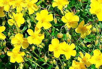 Hellos Anthemos (sole e fiore), Eliantemo o Rock Rose (Helianthemum Mummularium) ha i fiori giallo oro, cresce su prati secchi, calcarei e nei boschi, è rampicante e cerca sempre il sole; fiorisce tra la primavera e l'estate.
