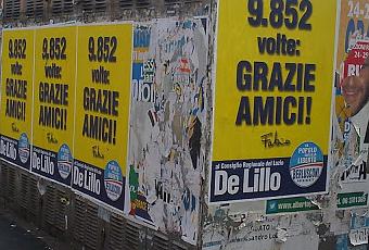 Nel mio quartiere fioccano i ringraziamenti quelli di De Lillo e delle feste all'aranciera di Porta Metronia se non erro, seguito da tale Santori, il cui attacchino alle ore 11 dell'altro giorno, in via Caffaro, attacchinava impunito (ho chiamato i vigili ma non avevo tempo per aspettare e vedere il risultato).
