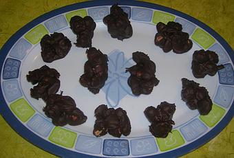Sciogliere il cioccolato ( gusto a piacere) a bagnomaria, aggiungere la frutta secca (separatamente) .