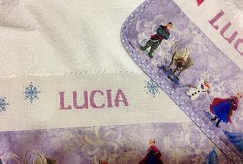 Sono arrivata a stento a finire bavaglio e asciugamano il giorno prima che iniziasse la scuola, andando a letto all'1 di notte. Però che soddisfazione mettere il tutto dentro lo zainetto nuovo di zecca, anche lui di Frozen.