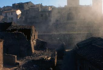Intorno alle 19.oo, del 6 febbraio 1971 la prima scossa dell'8° grado della scala Mercalli ... alle 21.00 una seconda poco più leggera ma ormai l'antico paese del viterbese praticamente è un cumulo di macerie .... aimè ne fui testimone. Al mio arrivo nelle prime ore del giorno seguente il centro storico è ancora fumante di polvere e gli effetti sono disastrosi: 31 i morti e più di un centinaio i feriti, 500 gli edifici lesionati, quasi il 70% del totale, 5000 persone hanno perso la casa e rimangono all'agghiaccio , le linee elettriche e telefoniche sono interrotte e l'acqua viene a mancare.I soccorsi arrivano veloci da Viterbo e dalla Capitale, Vigili del Fuoco, Polizia, Carabinieri ed Esercito sono subito sul posto, le fotoelettriche accese, la ricerca dei sopravvissuti sotto le macerie, nuovi crolli, paura, freddo e tante lacrime...si cerca di salvare quel che si può.