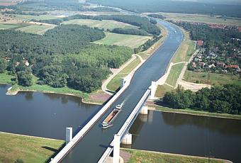 Il ponte che vedete si chiama Magdeburg Water Bridge ed è stato ultimato nel 2003.