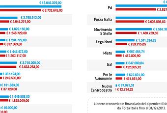 Perché se da un lato lo Stato ha iniziato a chiudere il rubinetto dei rimborsi elettorali, dall’altro ha lasciato intatto quello del contributo ai gruppi. Tra Camera e Senato, in un anno di finanziamento ai gruppi, i partiti politici hanno ricevuto l’equivalente di due anni di rimborsi elettorali.