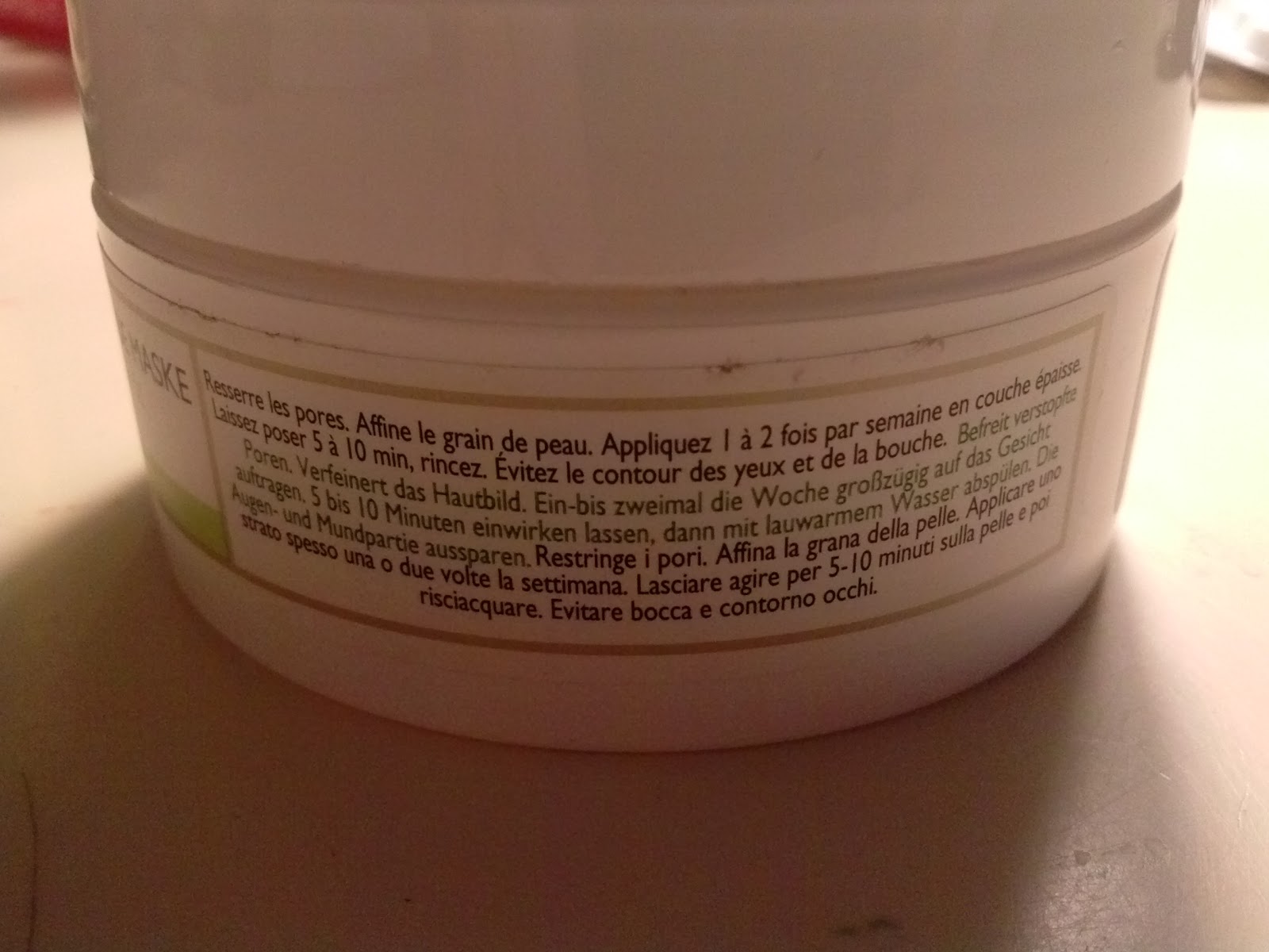 La mia opinioneIl vasetto è comodo, largo e basso, di modo che non debba stirarmi le dita per arrivare a prendere il prodotto sul fondo (che raggiungerò fra non molto). Non pesa tanto, e la quantità è piuttosto elevata: 100 g, che bastano per davvero tante applicazioni (non le ho contate, ma l'avrò usata almeno una dozzina di volte e non ho ancora raggiunto il fondo). Come consistenza è piuttosto densa, ma non dura, ed è semplice da spalmare, in un certo senso mi ricorda un po' il mascarpone (dahhh mi è venuta fame -.-). Il colore è un grigino-bianchiccio, non granchè invitante, ma non me la devo mangiare, ecco. Il profumo delicato e fresco, sa di pulito, con una nota floreale e fruttata. Io ne stendo uno strato piuttosto spesso sul viso, perchè quando ne stendo uno sottile finisce sempre che la mia pelle se lo beve. Le istruzioni dicono di tenerla in posa da 5 a 10 minuti, ma anche 15 non fanno male, anche perchè la maschera non secca la pelle, che una volta "libera" non tira ed è decisamente più pulita. Mi piace molto l'azione che ha sulla mia pelle, che è molto ma molto sensibile, e sebbene questa sia una maschera purificante non ne esce stravolta.