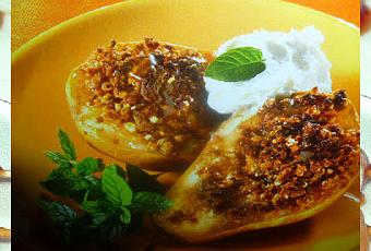 lavare e asciugare le pere tagliarle a metà e togliere il torsolo con l'aiuto di uno scavino disporre su una placca da forno condirle con miele a filo