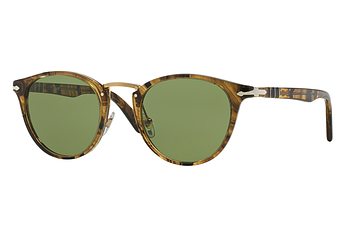 Forma morbidamente squadrata e maschile per l’occhiale dal fascino Retrò, con ponte metallico inciso al laser. Il modello è caratterizzato da dettagli esclusivi ispirati alle meccaniche delle macchine da scrivere Vintage, come i rivetti in metallo che riprendono i tasti delle singole lettere e le aste incise a raggera nella parte finale. Il leggero telaio in acetato è studiato per offrire il massimo comfort e personalizzazione nella vestibilità, grazie alle aste flessibili con triplo sistema Meflecto, storico e insuperato brevetto Persol. Il modello è declinato in una nuova e ampia gamma di acetati, in accostamenti anche con lenti polarizzate ad altissima protezione, capaci di garantire chiarezza visiva in condizioni estreme. Varianti: Nero con lente grigia (Polar e non Polar); Avana con lente marrone (Polar e non Polar); Marrone striato con lente Polar blu; Beige striato con lente Polar grigia; Marrone chiaro striato con lente verde; Grigio striato con lente grigia. Firma Typewriter Edition incisa in carattere d’epoca all’interno dell’asta e raffinato packaging dedicato.