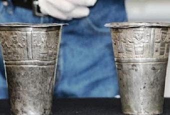 I due bicchieri di metallo scoperti a Purunilacta de Soloco, in Perù (Foto: El Comercio/Wilfredo Sandoval)