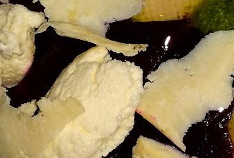Il pesto sarà una striscia alla base del tuo piatto, sopra metterai una montagnetta di barbabietole,