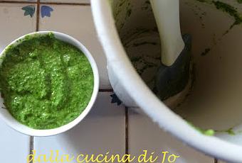 Premetto: se userete rucola vera, di quella che cresce in giardino spontanea o, al limite, una varietà da voi coltivata, il pesto avrà un sapore sublime. In ogni caso ci si accontenta e, non possedendo la fortuna sopra citata, si ricorre alla rucola che si trova in commercio, che ha meno sapore ed è meno piccante.Il pesto viene comunque di un bel colore verde intenso e con il suo particolare aroma.