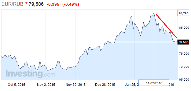 Ad esempio, il rublo russo, contro euro, è passato da 90 di metà febbraio agli 80 di oggi; mentre contro il dollaro l'apprezzamento è stato assai meno vigoroso.