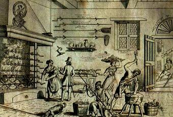 Traitement de l’anguille dans une manufacture au XIX siècle à Comacchio - Neri.- Archives du début du XIX siècle, bibliothèque municipale de Comacchio.