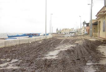 Il maltempo di queste ultime 48 ore ha creato danni notevoli ancora una volta al lungomare di Petrosino, sommerso dalle onde, che hanno lambito anche le case, con la carreggiata piena di alghe.