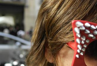 PFW e un occhiale rosso fuoco alla sfilata di Junko Shimada