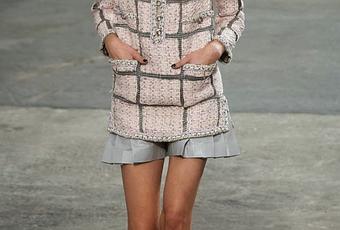 Partiamo dalla scenografia che in casa Chanel non passa mai inosservata , dove troviamo gli emblemi della maison , come la storica borsa 2.55 e il profumo , che si trasformano inimponenti opere d'arte moderna. Quindi anche Karl Lagerfeld sceglie la contemporaneità.Senza tralasciare la tradizionalità della maison , dipinge sui suoi capi , unisce due mondi così vicini , quello dell'arte e della moda , portando un po' di pop art e cultura giovanile in passerella. Ecco quindi schizzi e trame pittoriche , zainetti con graffiti , occhiali degni di Lady Gaga e collane con maxi perle che sembrano delle cuffie per sentire la musica. Troviamo anche qui alcune tendenze predominanti per la S/S 2014 , tra cui i crop top , i riflessi metallici e le maxi frange. Inoltre fanno già parlare di sé le scarpe-calzino proposte in passerella.Rimango sempre un po' confusa dopo uno show di Chanel