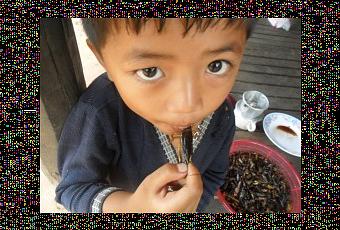 La crisi economica potrà portare ad evitare di mangiare crostacei, troppo costosi. Allora Mauro mi manda questa ricetta, prelibata cambogiana. Mi segnala anche che ha letto in giro articoli che parlano dei “poveri bambini cambogiani che si cibano di cavallette”, quando questo è, invece, un piatto succulento.