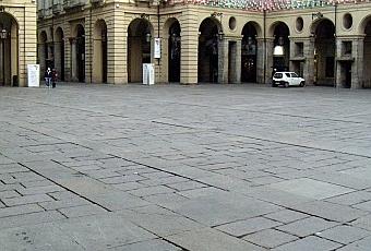 Nel Medioevo era la piazza più importante della città, con il mercato, la torre civica e il municipio, nella cui corte laterale si vendevano il burro e il pane.Compito dell'autorità civica era assicurare l'afflusso di provvigioni e sorvegliare su pesi e transazioni.Dal 1756 la piazza assume le forme attuali, ad opera di Benedetto Alfieri.Il monumento del Conte Verde (P.Palagi, 1853 ) fu oggetto dei primi esperimenti di illuminazione elettrica con lampade ad arco dall'autonomia di qualche ora.Tratto da "Storie di Torino"