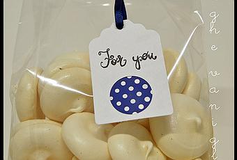 Io le ho confezionate in sacchetto trasparente, poi ho decorato il sacchetto con della carta da pacco blu a pois bianchi. E ho fatto una piccola tag con la mia nuova fustella ;)Paola e le sue bimbe hanno davvero apprezzato e inutile dire che di idee sul package ce ne sono un'infinità. Se anche voi volete provare vi lascio la mia adorata ricetta.